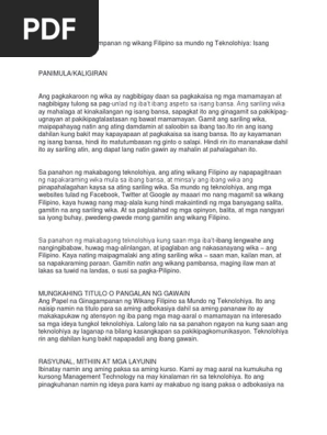 Ang Papel Na Ginagampanan Ng Wikang Filipino Sa Mundo Ng Teknolohiya Pdf